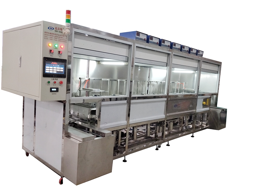 由超聲波洗凈槽、超聲波漂洗槽、慢拉干燥槽、過(guò)濾循環(huán)系統(tǒng)、電氣控制系統(tǒng)及純水供應(yīng)系統(tǒng)等組成。